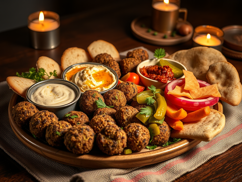 mezze platter ideas, Middle Eastern party board, healthy falafel platter
