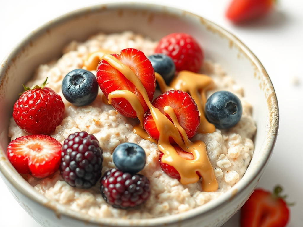 6. 🥣 Instant Oats with Berries and Almond Butter