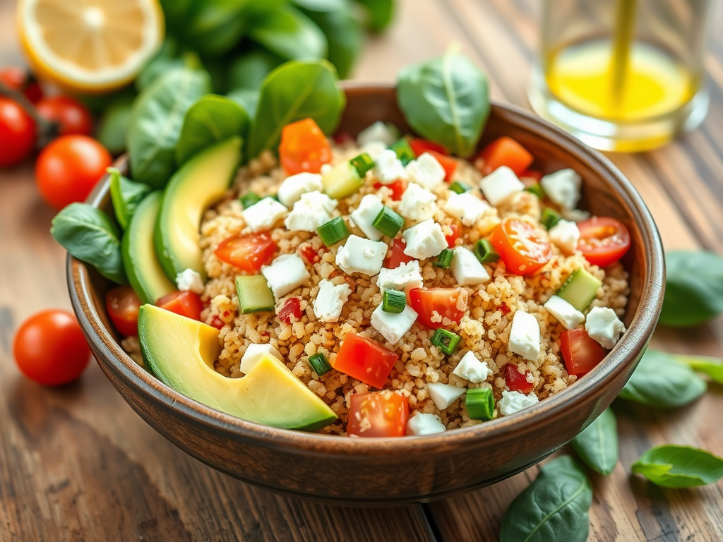 Mediterranean Quinoa Salad with Avocado and Feta (for One)