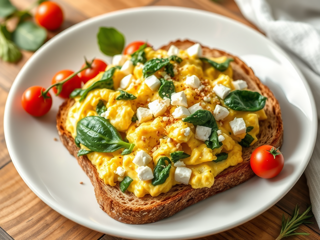 Scrambled eggs are the solo cook’s best mate—reliable, fast, and endlessly riffable. But these aren’t your basic “dash-of-milk, burnt-in-a-pan” eggs. Oh no. We’re going slightly luxe with baby spinach, crumbled feta, and a slice of grainy toast that holds it all together like a breakfast superhero.