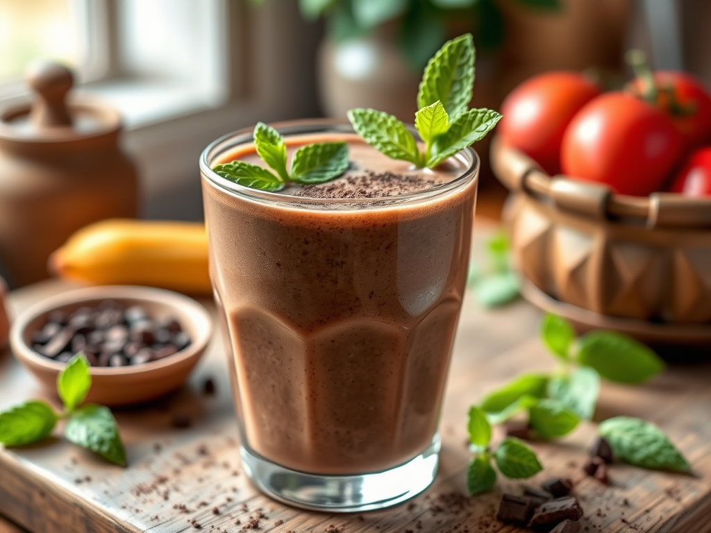 4. Serve with flair → Pour into a glass, and if you’re feeling fancy, sprinkle with a dusting of cacao or a mint leaf garnish.