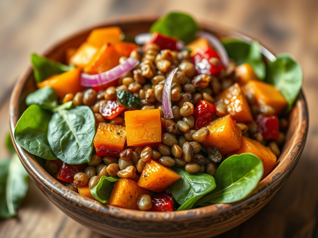 Keywords: high-protein vegetarian lunch, lentil salad for one, healthy solo meals, gym meal prep, low-GI lunch recipes